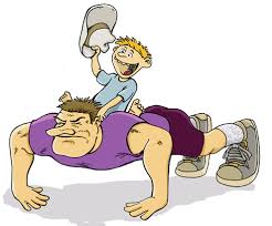 Nedanstående bild skulle kunna vara jag som gör armhävningar och Angelica sitter uppepå och hejar på :-)